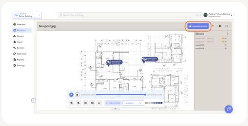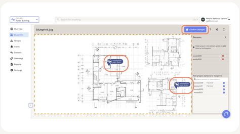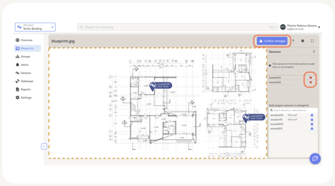 - Position sensors on the blueprint by dragging and dropping them from the attached sensors list in the sidebar.