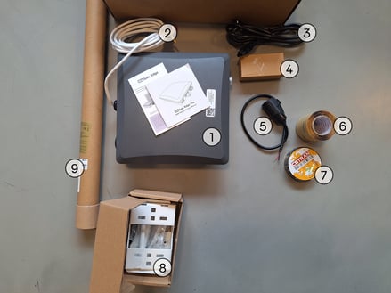 When you receive the outdoor gateway, make sure that you have all necessary parts. The shipment should consist of a large box with the gateway and all accompanying accessories, and a long cylindrical box with the antenna.