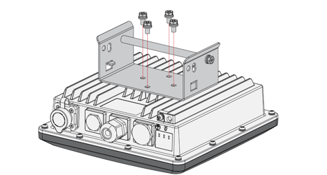 1. Fix the bracket (8) included in the mounting kit on the bottom of the gateway (1) with four M6*12 screws.