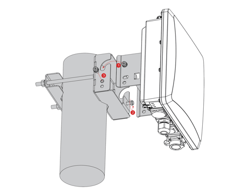 - Use the adjustment screw (②) to fine-tune the vertical angle of the gateway. This allows you to correct any tilt caused by the enclosure‘s draft angle or pole misalignment, ensuring that the antenna is perfectly vertical.