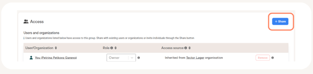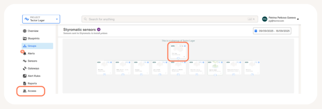 - Once you are at the Group Hierarchy, press on the group/subgroup you want to share at then click Access tab in the sidebar on the left-hand side.