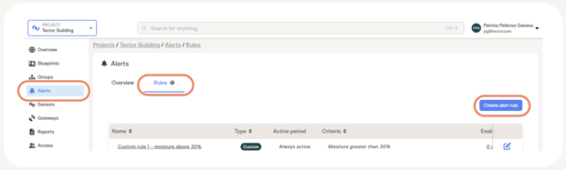 However, we understand that every project is unique and may require different measurement criteria depending on the location of the sensors, building materials, construction phase, etc. If you are looking for inspiration, we have put together some best practices from our clients to show how they are using the system and what unique alert rules they have created. If you already know exactly what kind of alerts you need, then follow the guide below to learn how to create them.