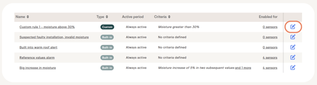 - Built-in alerts cannot be edited but you can choose, which devices they are enabled for.