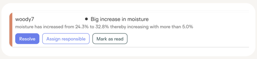- Reference values alarm: This alert is the newest addition to the built-in alerts and it indicates that the moisture measured by the sensor is higher than the defined maximum according to the reference values.